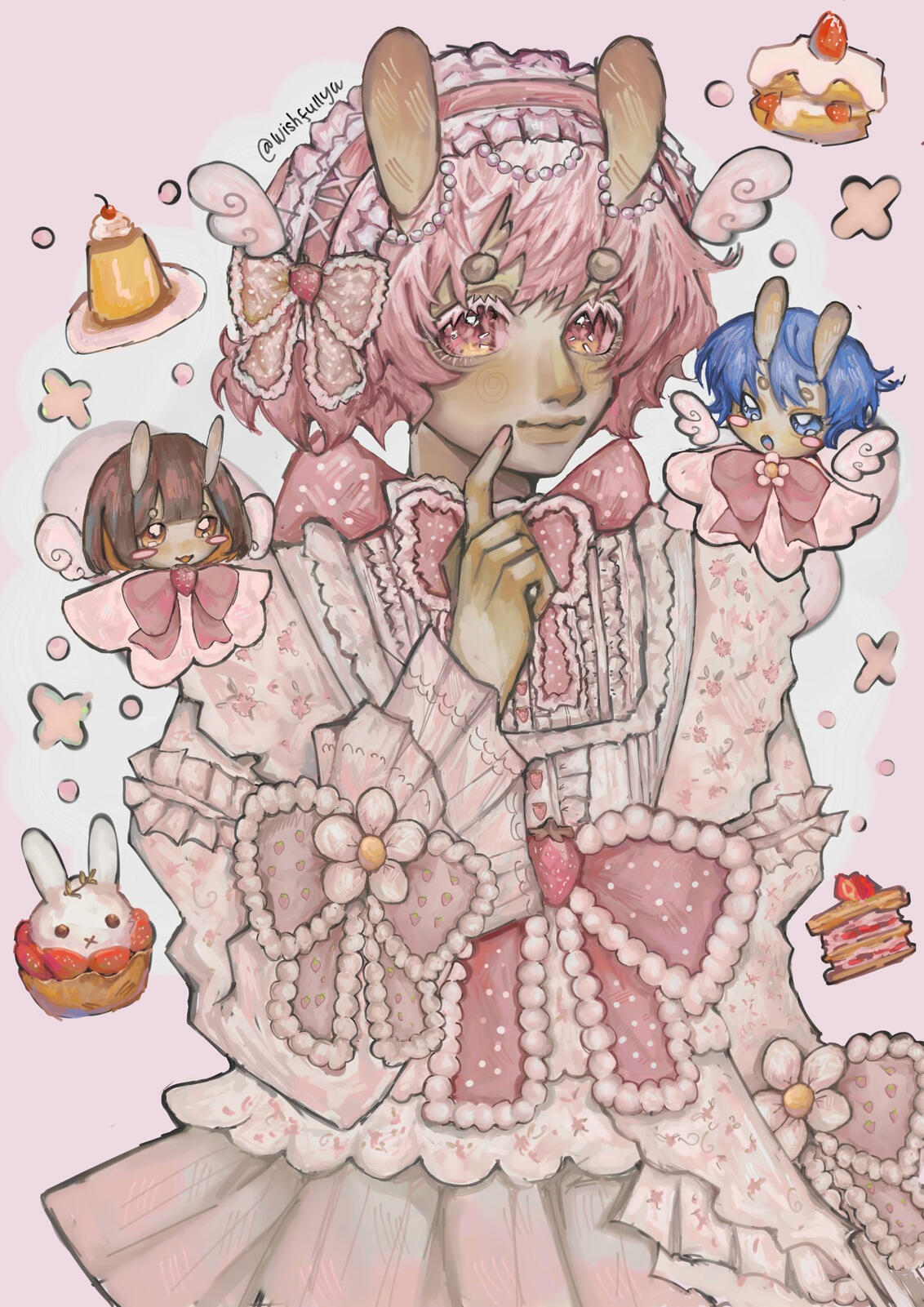 ✿ wajib menyediakan referensi lengkap, jelas, dan detailed(desain karakter, color palette, pose, dll)